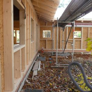 Das neue Gebäude steht an derselben Stelle, hat die gleiche Höhe und Breite und ist, wie geplant, wieder als Zweckbau errichtet worden. Verein und Architekt Schönhaar haben sich bei der Planung an den Bestandsschutz gehalten. Und dennoch hat sich einiges geändert. "Die Decke war vorher abgehängt, nun reicht sie bis unter den First, das macht die Räume größer und heller - sehr gelungen, auch die Holzfenster sehen gut aus", sagt Daniela Steck, in der Ortsgruppe des Schwäbischen Albvereins zuständig für die Öffentlichkeitsarbeit. Neu sind das behindertengerechte WC im Erdgeschoss, zwei weitere Nasszellen im Keller sowie eine gläserne Fluchttür, die zusätzlich Licht einströmen lässt. Die Bauauflagen hatte das Baurechtsamt Leinfelden-Echterdingen ausgesprochen. Es musste den Wiederaufbau genehmigen. Auch die Untere Naturschutzbehörde des Landkreises hatte ein Mitspracherecht, weil das Grundstück am Gräbleswiesenweg im Landschaftsschutzgebiet liegt.